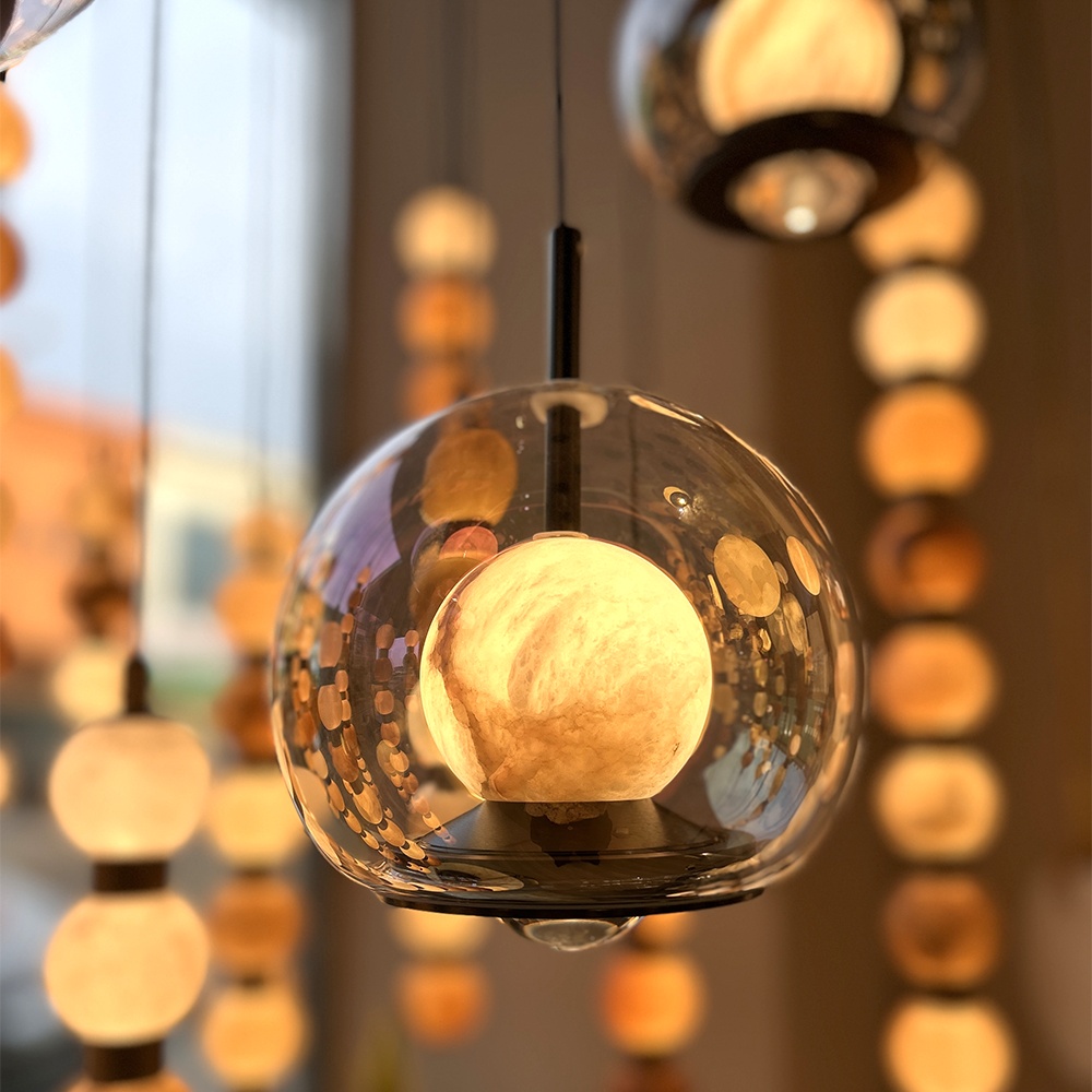 Vitrine moderna para instalação de luz pendente em vidro fumê